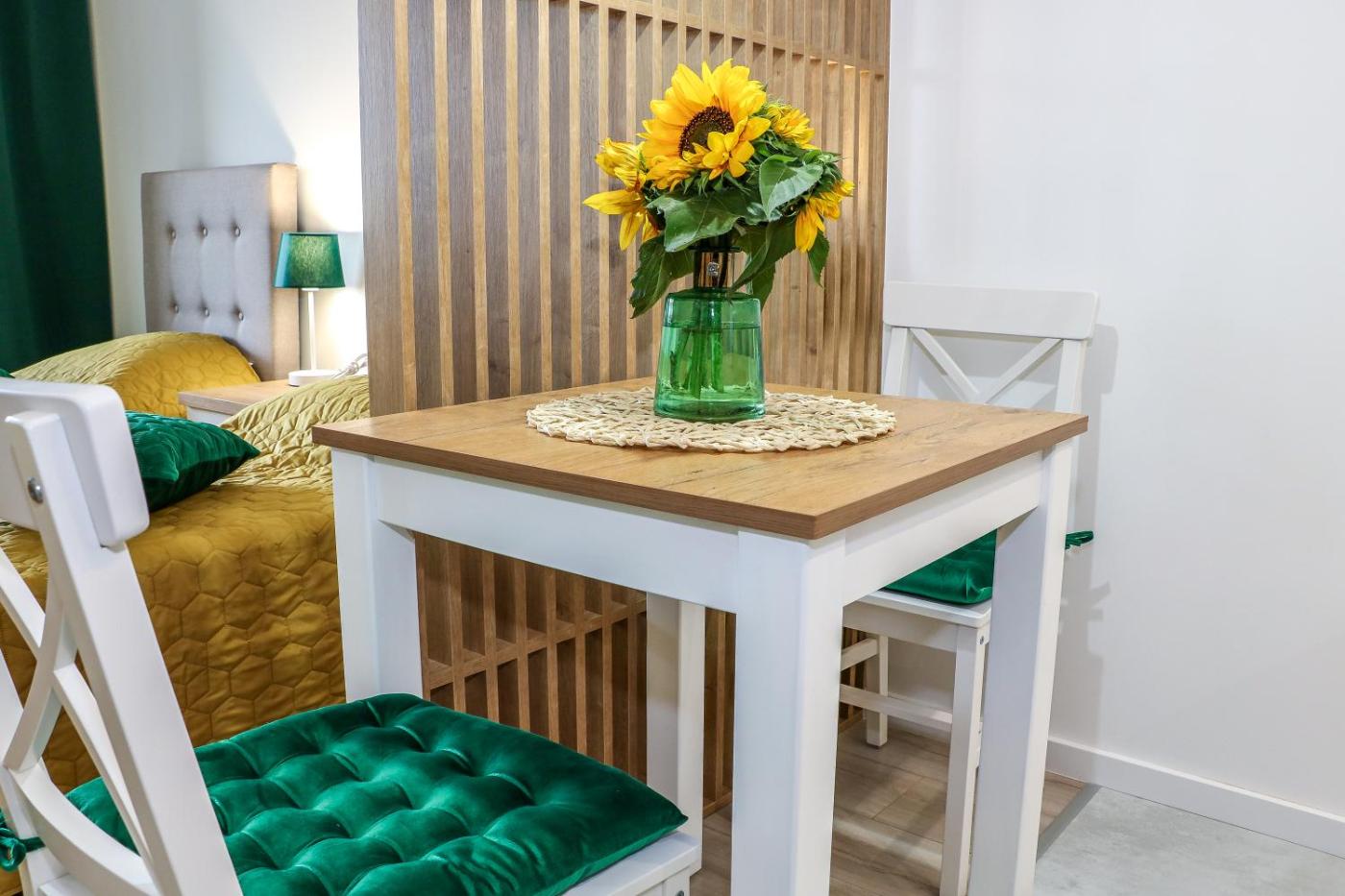 W apartamencie zapewniono sypialnię (1), łazienkę (1), pościel, ręczniki oraz aneks kuchenny z pełnym wyposażeniem. Do dyspozycji Gości jest także telewizor z płaskim ekranem z dostępem do kanałów satelitarnych oraz balkon z widokiem na miasto.