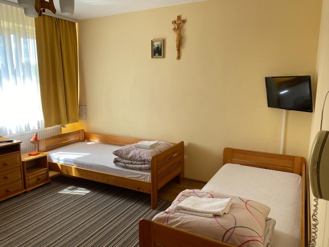Pokój czteroosobowy z prywatną łazienką. The quadruple room includes a private bathroom fitted with a shower. The quadruple room features a flat-screen TV, a wardrobe, a carpeted floor, heating as well as garden views. The unit has 4 beds. Pokój Czteroosobowy - 4 osobowy. Powierzchnia pokoju ok.: 20 mkw. ;