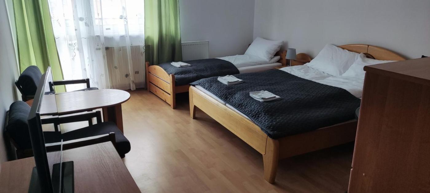Pokój trzyosobowy z balkonem. The spacious triple room offers a wardrobe, an electric kettle, a balcony with garden views as well as a private bathroom featuring a shower. The unit offers 2 beds. Pokój Trzyosobowy - 3 osobowy. Powierzchnia pokoju ok.: 35 mkw. ;