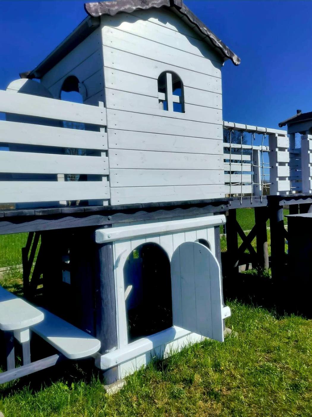 Domek z 2 sypialniami. This chalet features a fireplace. Boasting a private entrance, this air-conditioned chalet features 1 living room, 2 separate bedrooms and 1 bathroom with a shower and a hairdryer. Guests will find a stovetop, a refrigerator, a dishwasher and kitchenware in the fully equipped kitchenette. The chalet also comes with a barbecue. Featuring a terrace with lake views, this chalet also features a washing machine and a flat-screen TV with streaming services. The unit has 4 beds. Domek - 7 osobowy. Powierzchnia pokoju ok.: 63 mkw.