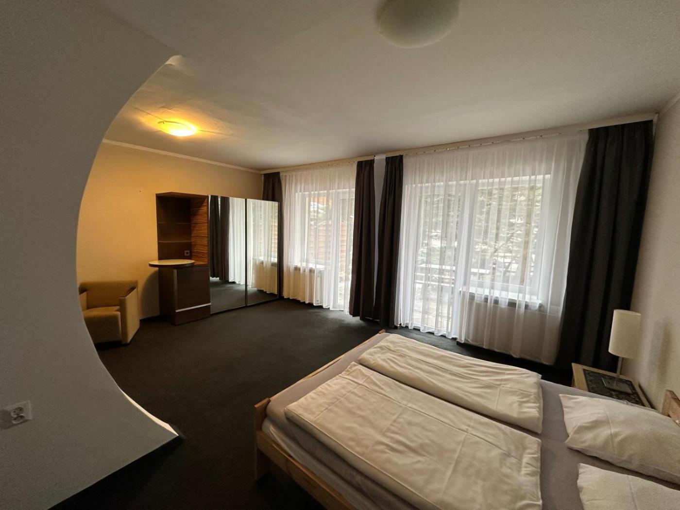 Apartament rodzinny typu Deluxe Suite. The family room offers a tea and coffee maker, a dining area, as well as a private bathroom featuring a walk-in shower and a hairdryer. Meals can be prepared in the well-fitted kitchen, which comes with a stovetop, a refrigerator, kitchenware and a microwave. The family room provides a wardrobe, a carpeted floor, heating and a flat-screen TV. The unit offers 1 bed. Rodzinny - 2 osobowy. Powierzchnia pokoju ok.: 33 mkw. ;
