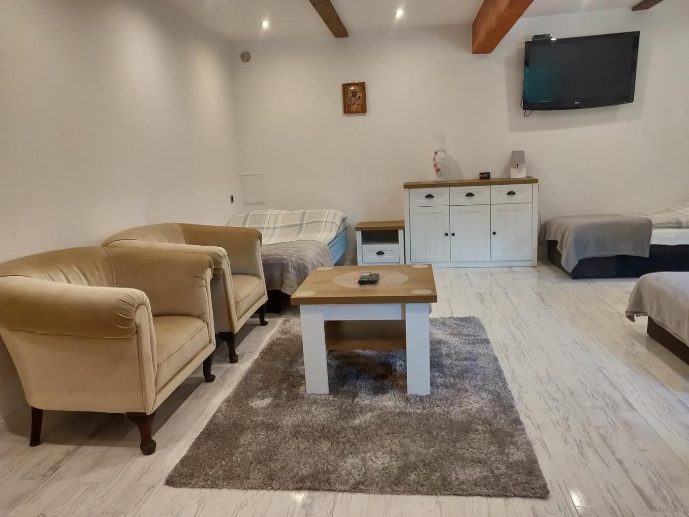 Pokój Rodzinny typu Deluxe. Guests will find a stovetop, a refrigerator, kitchenware and a microwave in the well-equipped kitchen. The family room also comes with a barbecue. The spacious family room features a private entrance, a tea and coffee maker, a terrace with garden views as well as a private bathroom boasting a shower. The unit has 4 beds. Rodzinny - 5 osobowy. Powierzchnia pokoju ok.: 45 mkw. ;