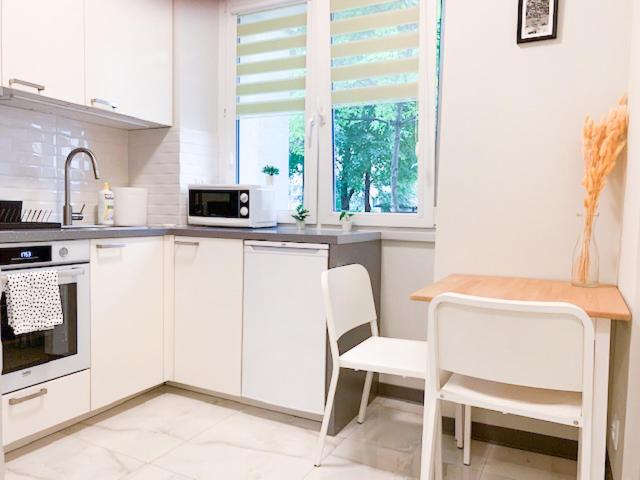 Apartament z 1 sypialnią. Featuring a private entrance, this apartment comprises a kitchen, 1 bedroom and 1 bathroom with a shower and a hairdryer. Meals can be prepared in the well-fitted kitchen, which comes with a stovetop, a refrigerator, kitchenware and an oven. The apartment provides a washing machine, a wardrobe, an electric kettle, a flat-screen TV, as well as garden views. The unit offers 1 bed. Apartament - 2 osobowy. Powierzchnia pokoju ok.: 32 mkw.