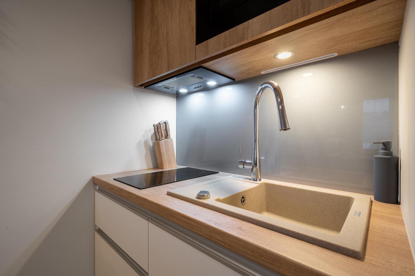W apartamencie znajduje się telewizor z płaskim ekranem. Aneks kuchenny wyposażono w lodówkę, zmywarkę i mikrofalówkę. Goście mają do dyspozycji również prysznic, bezpłatny zestaw kosmetyków oraz suszarkę do włosów.